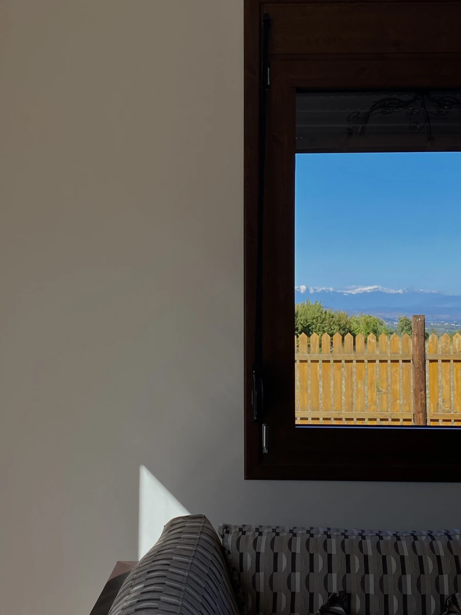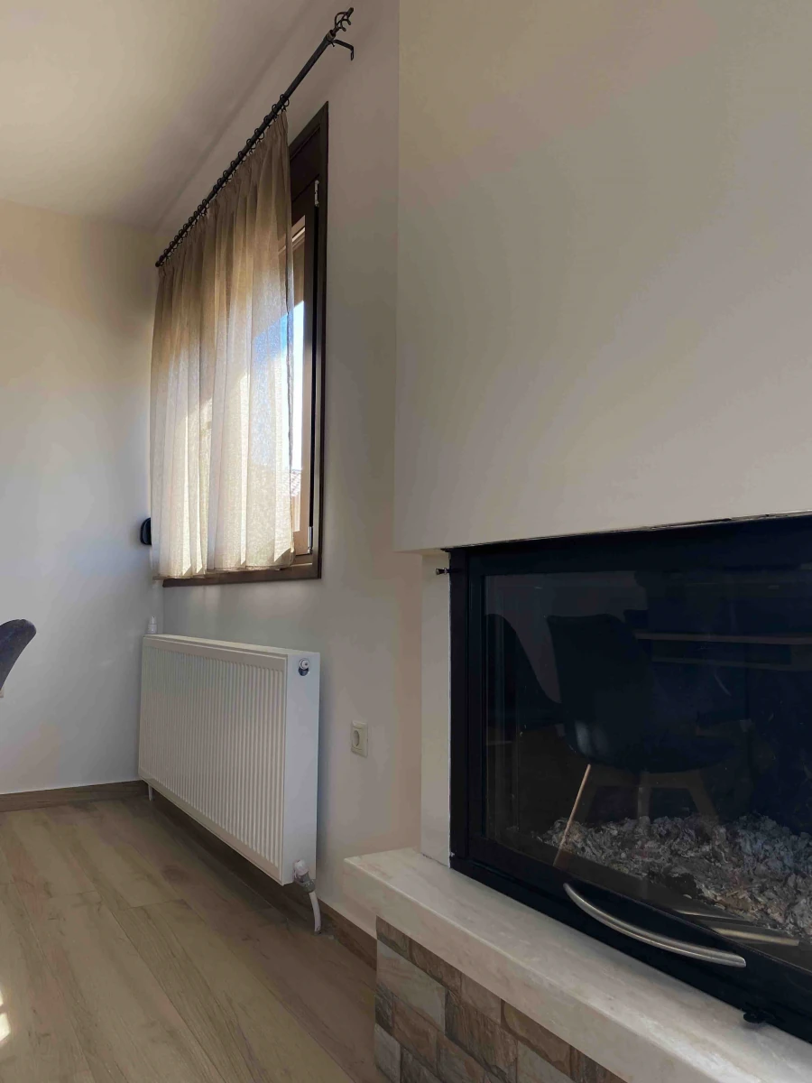 Η ατμόσφαιρα είναι φιλόξενη και φωτεινή, με φυσικά υλικά και ήπιες αποχρώσεις που αναδεικνύουν τη ζεστασιά του ξύλου.